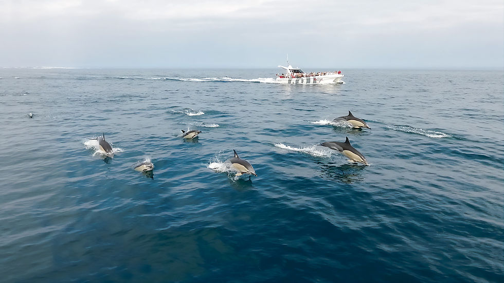 Durante o seu passeio, desfrute e observe os golfinhos no seu habitat natural. Este percurso depende da localização dos golfinhos.